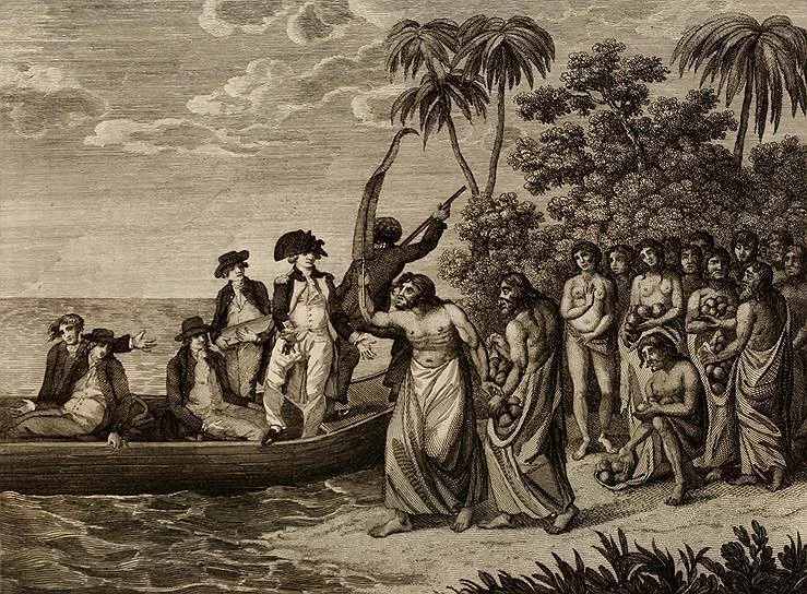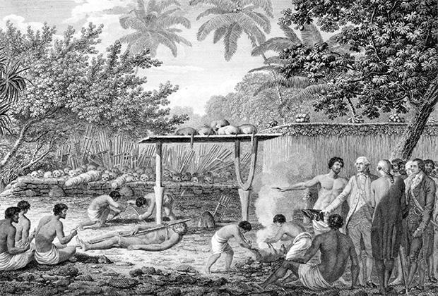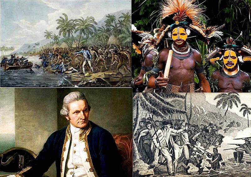 ... Увидев капитана, шедшего в сопровождении моряков, аборигены приняли его за Бога Лоно, возвращения которого они ожидали, и сперва воздавали ему почести. Но позже гавайцы поняли, что перед ними просто люди, и начали воровать у моряков вещи и даже лодки. Просьбы вернуть баркас не возымели результата, и Кук решил взять в заложники вождя. Но туземцы окружили Кука и матросов, а затем убили.