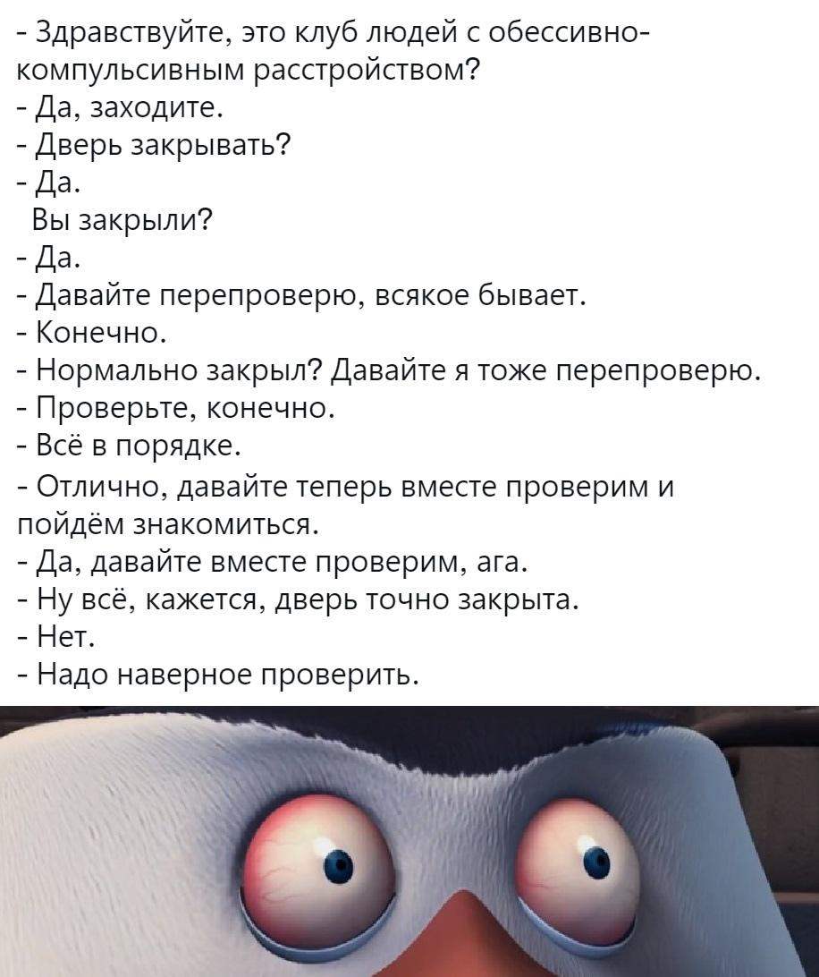 ответитьСпасибо, ребята и девчата за комментарии!!! Узнал название своей болезни - ОКР называется... Надо проверить, решил ли я кроссворд или нет ...