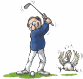 Такой клюшкой и с таким размахом он себе голову снесет.