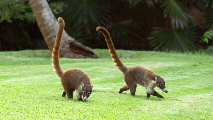 Зверь — близкий родственник енота. Так что носухи постоянно двигаются, что-то трогают, лапают и суют своей нос в любую дырку.