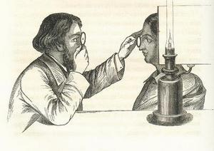 «При подготовке лекций по физиологии органов чувств я сделал открытие, которое может иметь величайший интерес для офтальмологии ... Оно заключается в известном сочетании стекол, позволяющем освещать чрез зрачок темное дно глаза. Таким способом удается отчетливо различить все детали сетчатки, кровеносные сосуды, место входа зрительного нерва и проч.» - так писал в 1850 г. своему отцу молодой профессор физиологии Гельмгольц. Писал об открытом им ОФТАЛЬМОСКОПЕ – приборе, осчастливившем и двинувшем вперед всю офтальмологию.