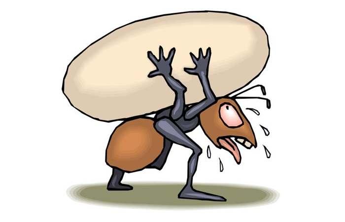 Ему, трудяжке, тяжело. Но, в отличие от Сизифа, труд его не напрасен)