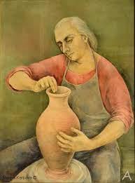 ответитьКак всегда, при деле. Украшает, наверно готовое изделие перед обжигом.