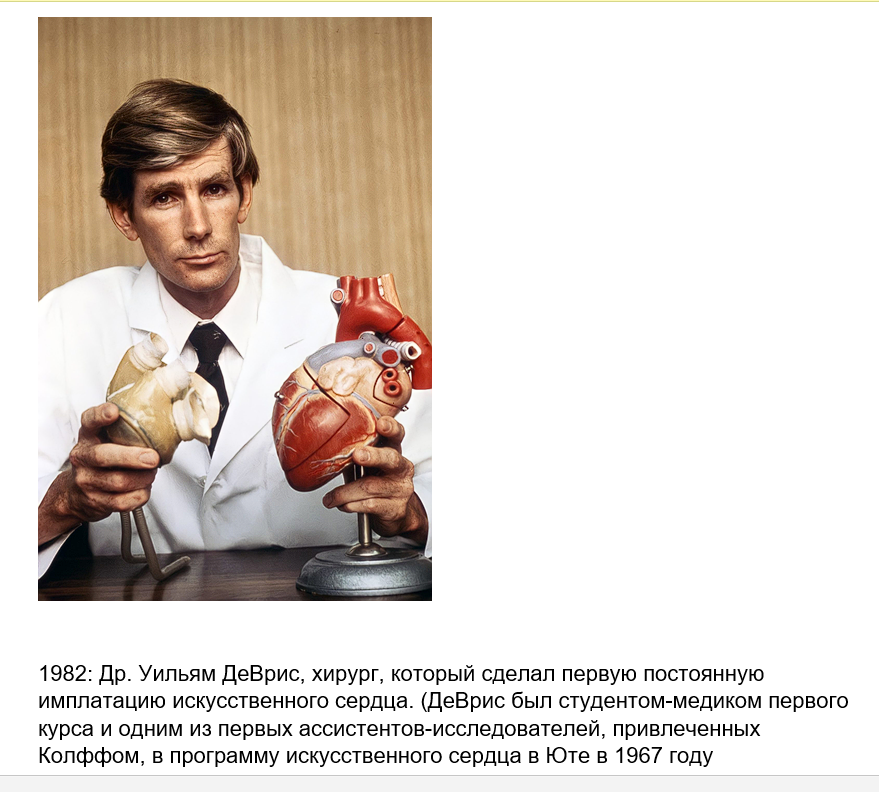 2 декабря 1982 хирург Уильям ДеВрис имплантировал сердце Jarvik-7, 61-летнему Барни Кларку, который прожил с ним 4 месяца.