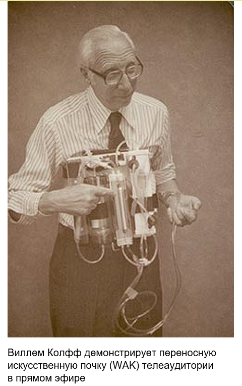 ответить... На одной из коек клиники Гронингена (Голландия) лежал 22-летний парень, умирающий от уремии со всеми её ужасами — запредельным давлением, головной болью, потерей сознания, рвотой, слепотой. А после смерти пациента молодого врача Колффа ждал самый страшный кошмар его жизни: сообщить матери парня о смерти ее сына.