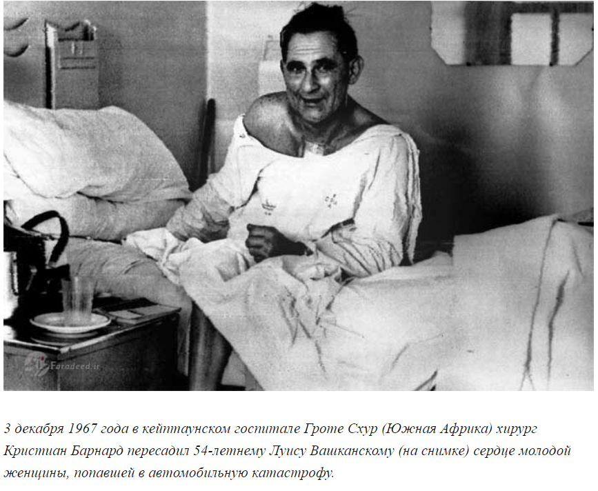 ... За плечами Барнарда было уже более полутора тысяч операций на сердце, и почках, а в последние годы перед трансплантацией он экспериментировал с пересадкой сердца у собак.