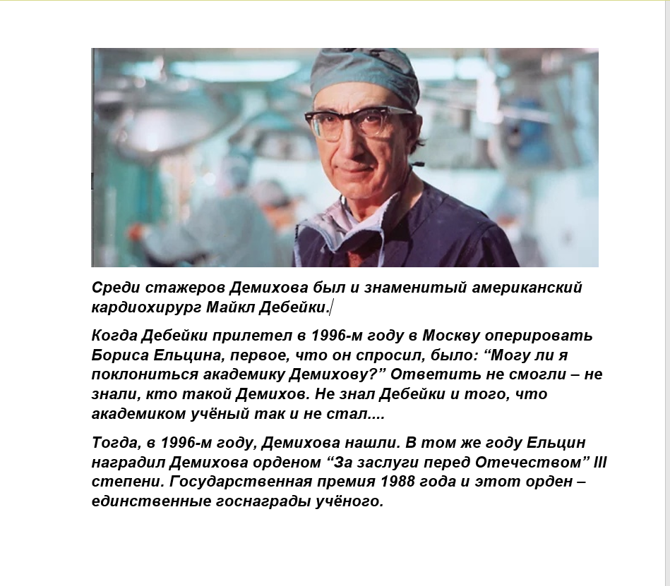 Но даже в таких условиях Демихов разработал метод сохранения жизненно важных органов (сердца, сердечно-легочного комплекса и т.д.)