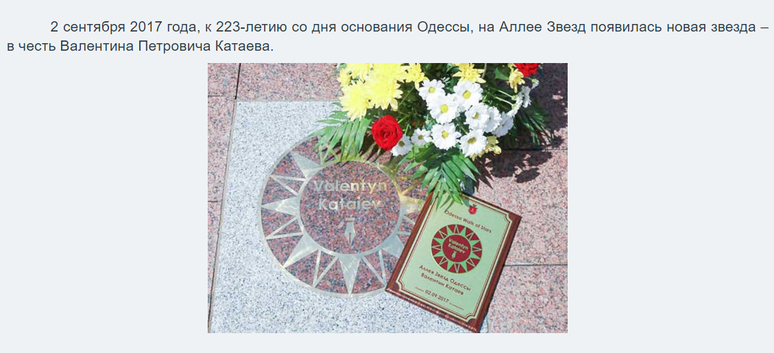 Советский писатель, с творчеством которого тесно ассоциируется память о моем детстве. "Цветик-семицветик", "Дудочка и кувшинчик", "Сын полка", "Белеет парус одинокий" - это навскидку.. Надо бы перечитать. Написано добротным русским языком. Конечно, не Тургенев и не Паустовский, изящных деепричастных оборотов немного, но по сравнению с современными текстами в интернете - цветущий луг и куча мусора..