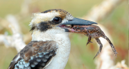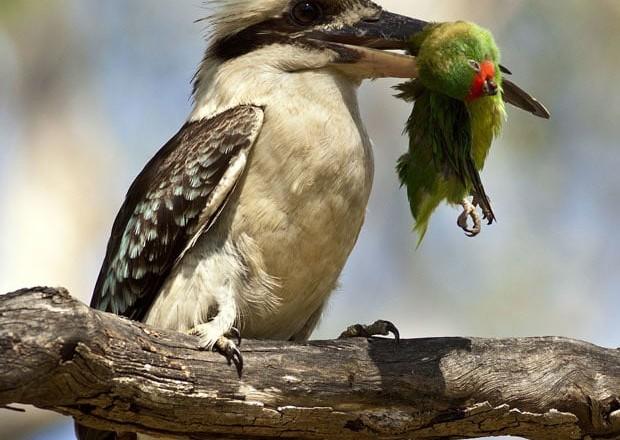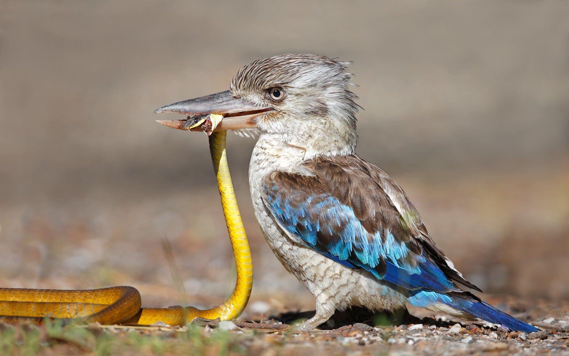 Отдельно стоит отметить, что кукабарры поедают ядовитых змей. Хватают своим крепким клювом рептилию сзади под затылком, поднимаются вверх, и кидают вниз. Процедуру эту повторяют до тех пор, пока не убьют. Если у них нет сил поднять змею, они её забивают камнями.