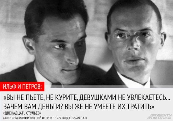 ... Потом были «Золотой Теленок» и «Одноэтажная Америка». Которую Евгению пришлось заканчивать одному – в 1937-м Ильф скончался от туберкулеза. Вместе с ним умер и писатель «Ильф и Петров».