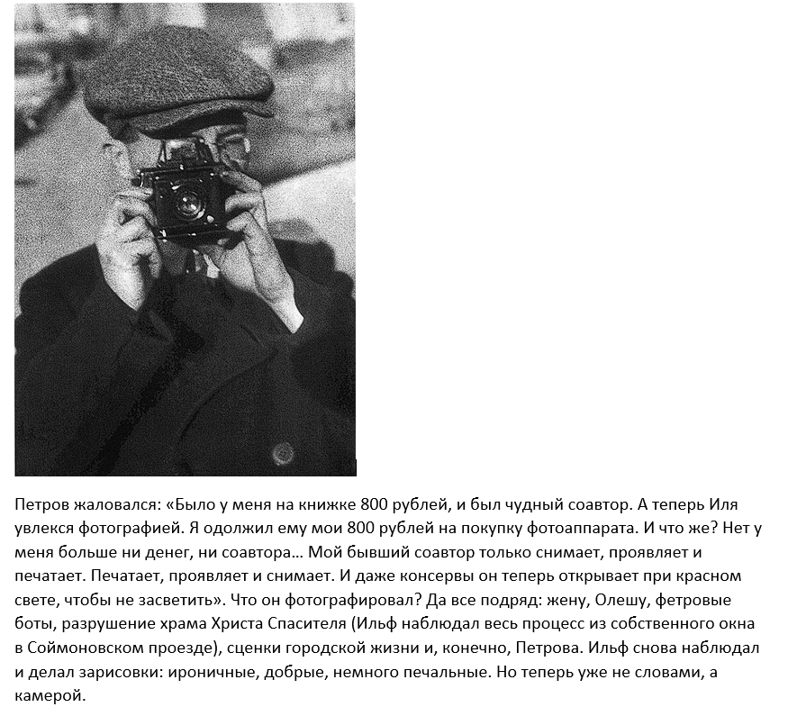 Он прожил еще два года, не прекращая работать. В какой-то момент они с Петровым попробовали писать отдельно: Ильф снял дачу в Красково, на песчаной почве, среди сосен, — там ему полегче дышалось. А Петров не смог вырваться из Москвы. В результате каждый написал по несколько глав, и оба нервничали, что другому не понравится. А когда прочли, поняли: получилось так, словно писали вместе...