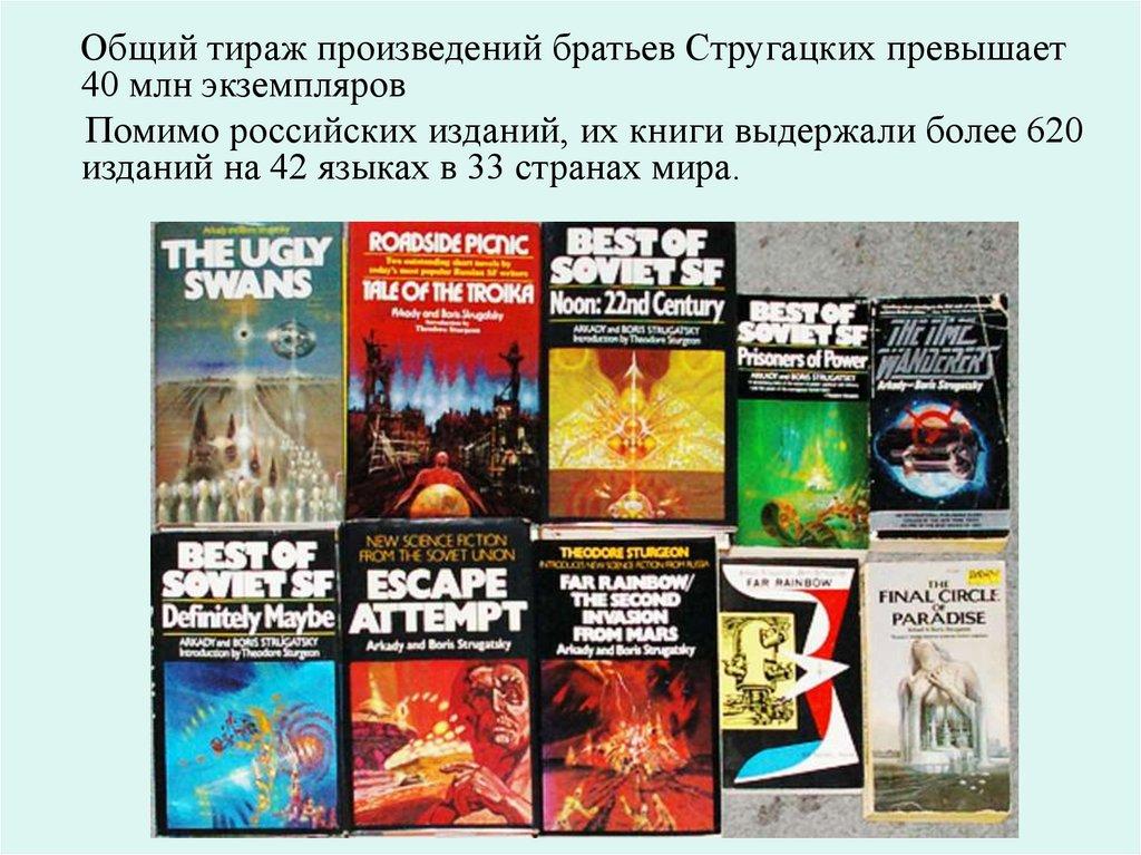 «Культурное значение Аркадия и Бориса Стругацких огромно. В течение нескольких десятилетий они вели за собой очень значительную часть советской интеллигенции. Фактически, были ее духовными вождями. Трудно назвать хоть кого-то из писателей 1960-х – 1980-х, кто оказал бы на наш образованный класс столь же мощное воздействие. В книгах Стругацких видны мысли, чаяния и этические установки миллионов интеллигентов того времени. И с этой точи зрения тексты Стругацких – настоящая энциклопедия советской интеллигенции. Покуда она жива, произведения знаменитого писательского дуэта забыты не будут»