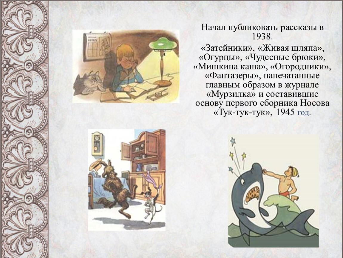 ... В одной из сопроводительных статей к сборнику рассказов Николая Носова есть забавный комментарий: «Перед тем, как читать эти рассказы и повести, подумайте о своих близких! Ведь это именно им придется туго, когда вы решите соорудить инкубатор или развести пчел, или, на худой конец, преподать собаке несколько уроков математики. А в том, что вы обязательно захотите все это сделать, никто и не сомневается. Николай Носов так заразительно умеет рассказывать о всяких разных делах своих героев, что просто невозможно устоять перед соблазном сделать все самому!»