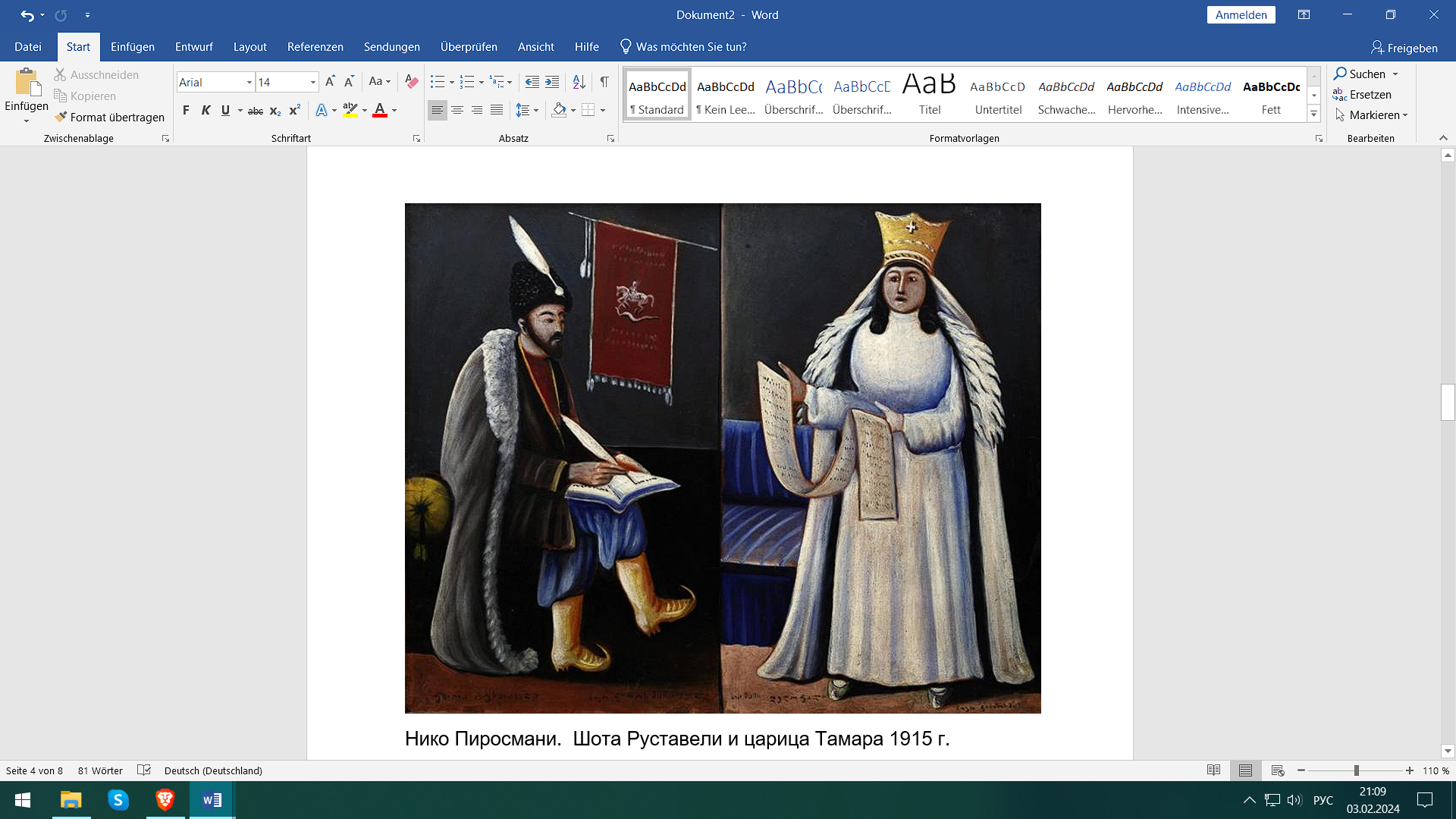 Вот в это время она и познакомилась с Шотой. Шота был сражен, покроен, повержен! Он ходил, как в лихорадке, с трудом соображал, не мог ни есть, ни пить. Вдохновленный этой любовью, поэт написал эпос «Витязь в тигровой шкуре», в которой описал свою безответную любовь.