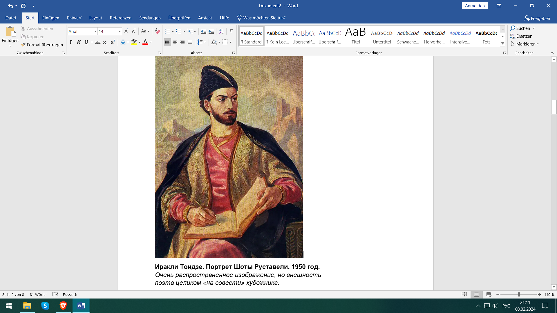 Замечательный портрет автора поэмы "Витязь в тигровой шкуре". Помнню, в нашей домашней библилтеке было прекрасное издание, замечательно оформленное, и конечно же, прочитанное)