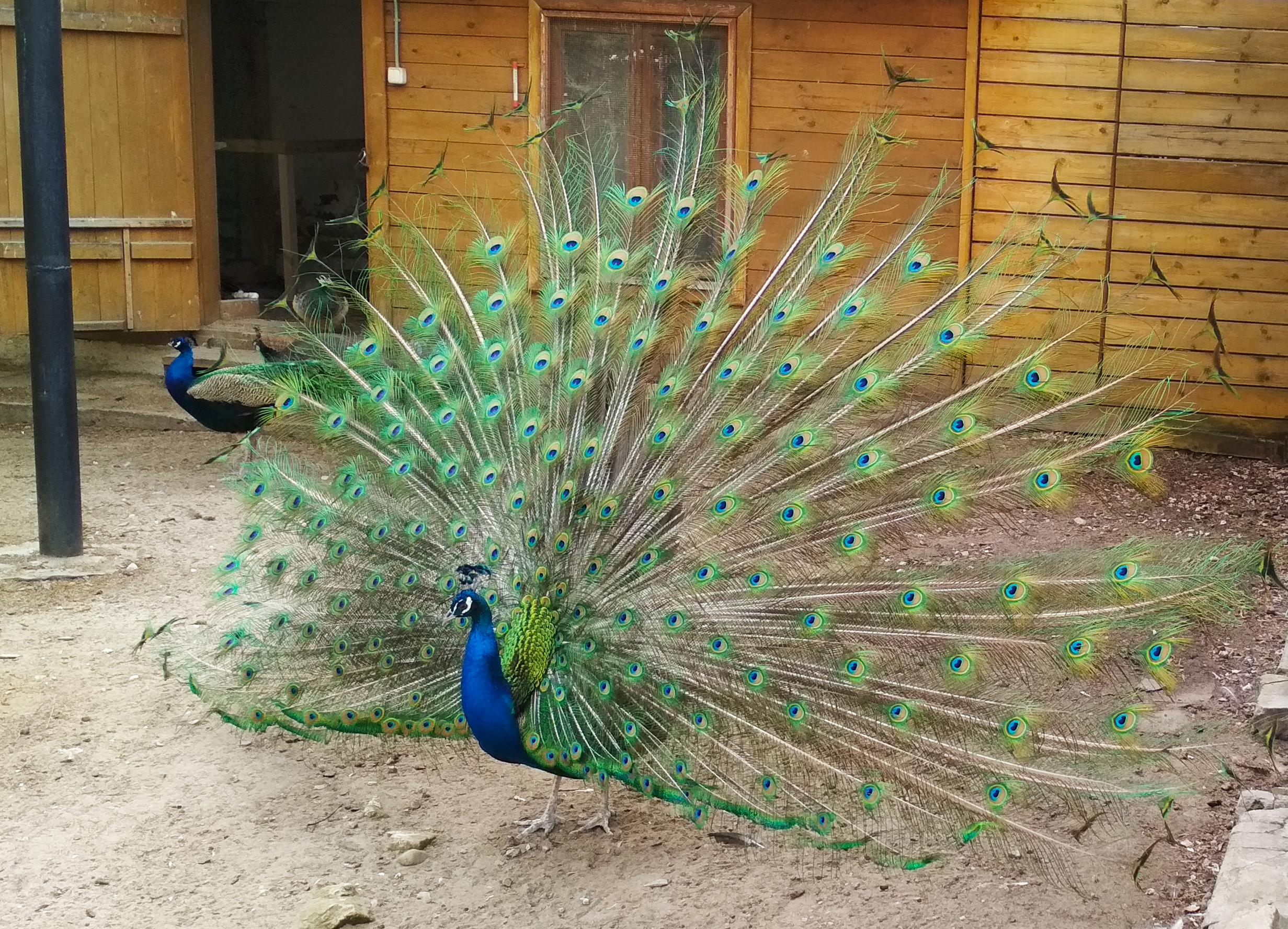 По парку гуляет птица-павлин,