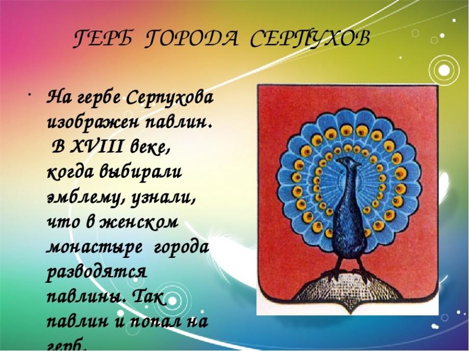 Павлин - символ города Серпухов. В 1691 году окольничий окольничий Михаил Колупаев преподнес подарок «…гнездо журавлей, павлин да пава…» Владычному женскому монастырю. В 1722 году Франциско Санти создал герб Серпухова с павлином, который утвердила Екатерина II в 1781 году. А павлины с тех пор так и живут по сей день на территории Владычного женского монастыря. 10 лет назад в 2013 году мне посчастливилось увидеть этот павлиний питомник. Большое спасибо автопу за кроссворд.