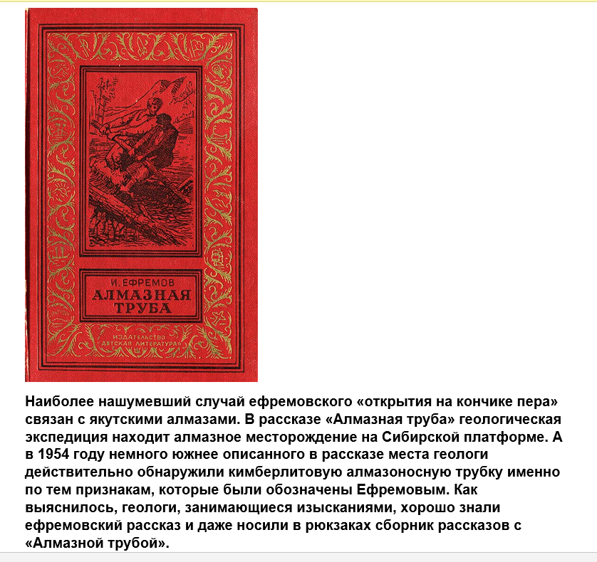 ...Прошлое интересовало Ефремова не само по себе, а с точки зрения появления в нем ростков современного отношения к миру. В будущем же он надеялся увидеть эти ростки развившимися. Братство людей, объединенных общим творческим поиском, преклонение перед красотой и героическая самоотверженность — вот что по крупицам искал писатель в прошлом, приветствовал в настоящем и провозвещал в грядущем.