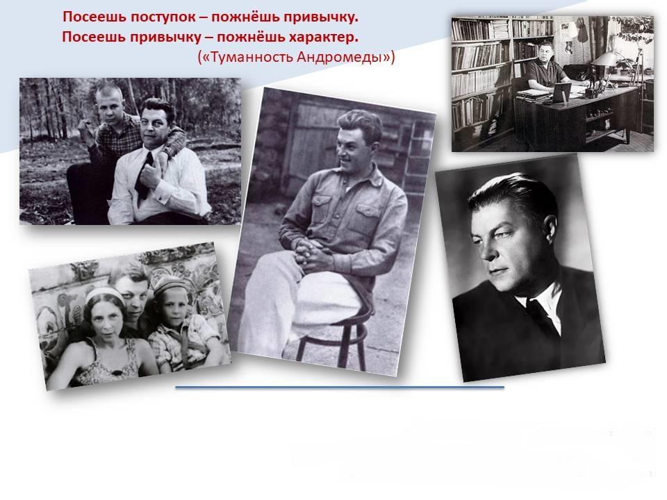 ...Полновесностью и энциклопедичностью идей Ефремов резко выделяется из общего ряда писателей-фантастов. По свидетельству современников, его интеллектуальная мощь и особенное, планетарное мышление окутывало фигуру писателя аурой мудрости, обаяния и колоссального превосходства.