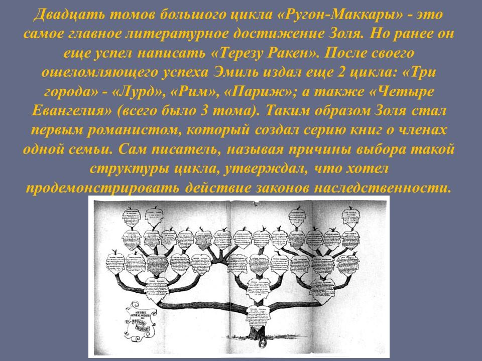 ... Франция, а вместе с ней и Золя пережили и крах Второй империи, и франко-прусскую войну. Всё это время романы из серии «Ругон-Маккары» с успехом издаются, деньги к писателю уже текут рекой.