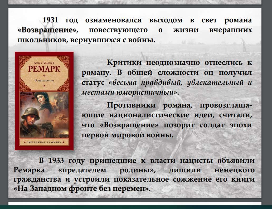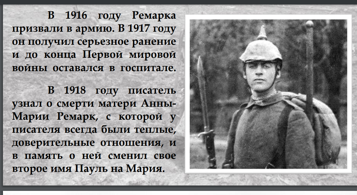 ...Ремарк — человек, который осмелился спорить с войной