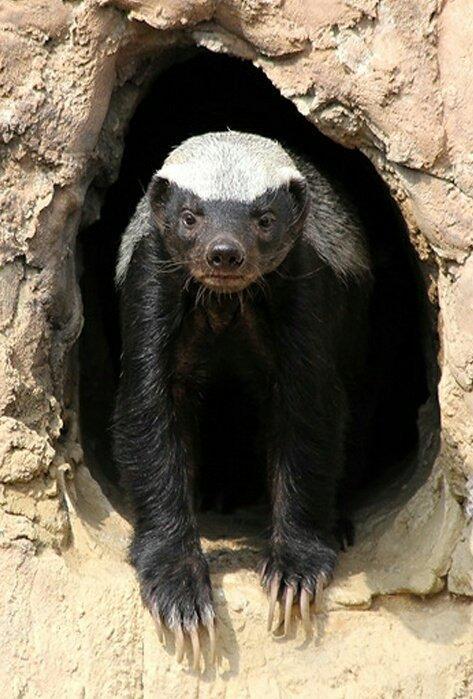 Размер у этого животного семейства куньих, обитающего в Африке и Азии –«метр с кепкой»... пардон, с хвостом. Тем не менее, медоед возглавляет рейтинг зверей-отморозков и считается самым бесстрашным животным в мире.А с виду такой симпатяжка!))