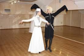 Не могу вспомнить (наверное, потому что такого не видела) кавказского танца, где мужчина так близко располагается к женщине как на рисунке этого кросса, тем более, кладет ей руку на талию.