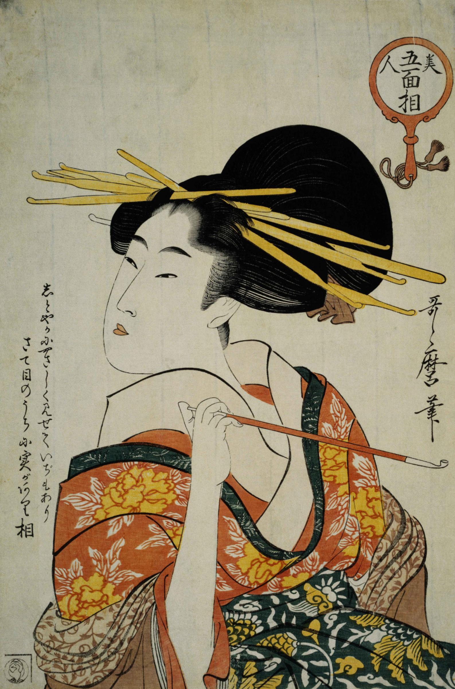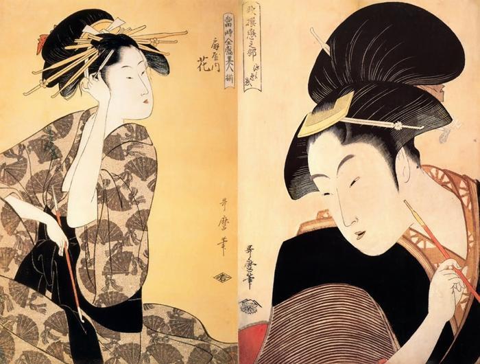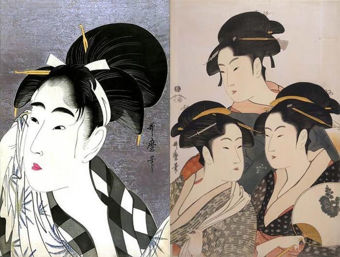 Отличная интерпретация в ч/б цветного кросса автора по работам японского художника 18 века Китагава Утамаро, посвященных обитательницам "веселых кварталов" Токио.
