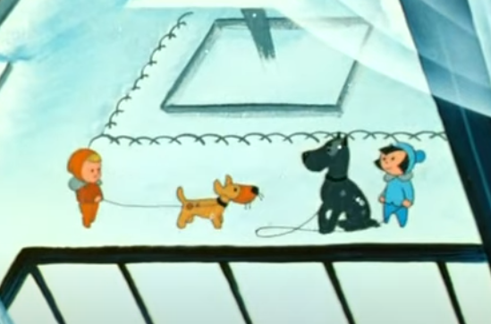 Во дворе. Сторожит. Пока молчит. Ждет, когда те двое, чьи тени мы видим по сторонам, начнут...))