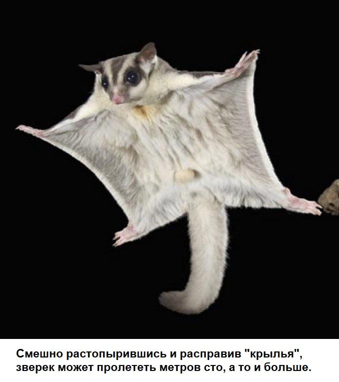 Они из семейства летяг, так что их главная примета - соединяющая запястья и лодыжки тонкая перепонка, которую хорошо видно, только когда ССЛ отправляется в полет. Причем хвост в полете служит рулем.