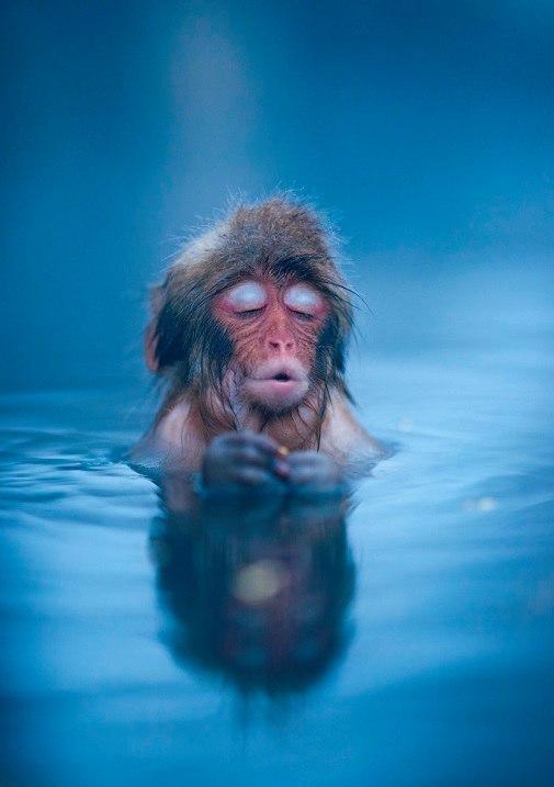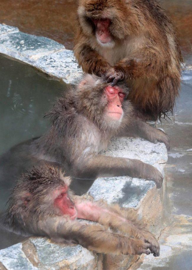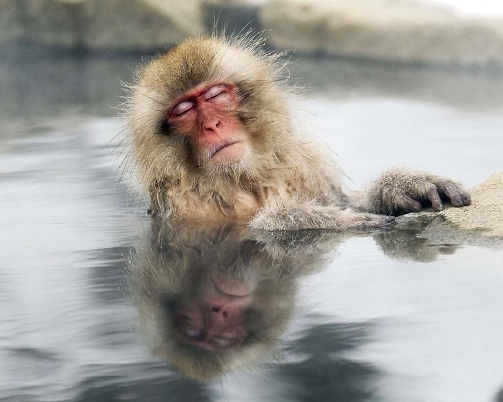 Что, в свою очередь, напомнило о других существах, которые холодными зимами ловят кайф в горячих термальных источниках парка Джигокудани на острове Хонсю:)