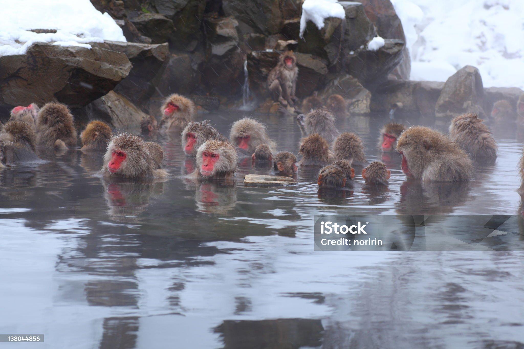 В природных бассейнах Джигокудани японские макаки плещутся целыми семьями, греясь, расслабляясь и закрывая глаза от удовольствия. Сидя в горячей воде по самую шею, снежные обезьяны проводят там большую часть дня и лишь после обеда, когда солнце максимально прогреет воздух, они могут выйти на сушу, чтобы поесть и обсохнуть.