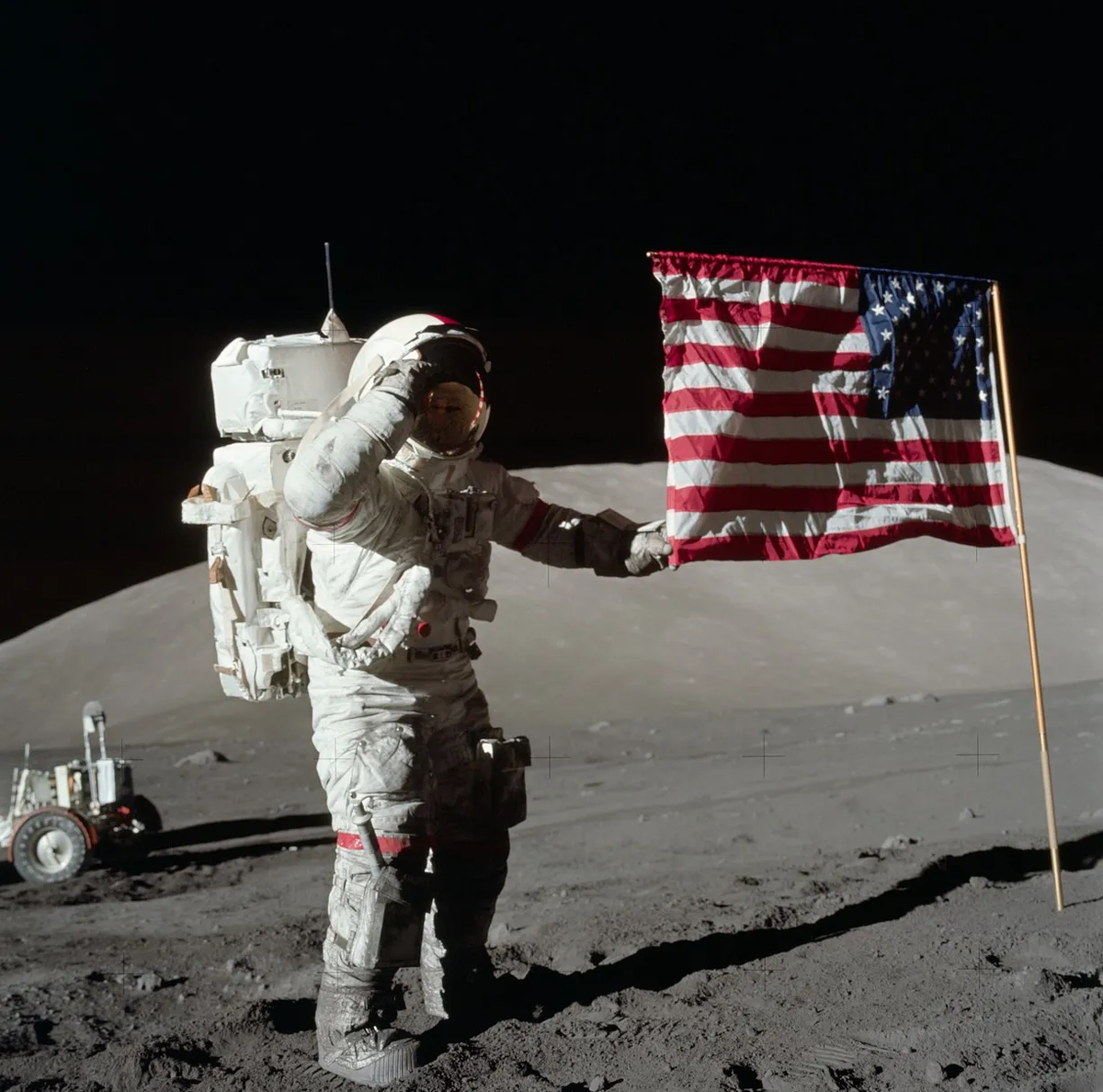 Так красиво под дуновением лёгкого ветерка колышется флаг... И кто придумал, что на Луне нет атмосферы?