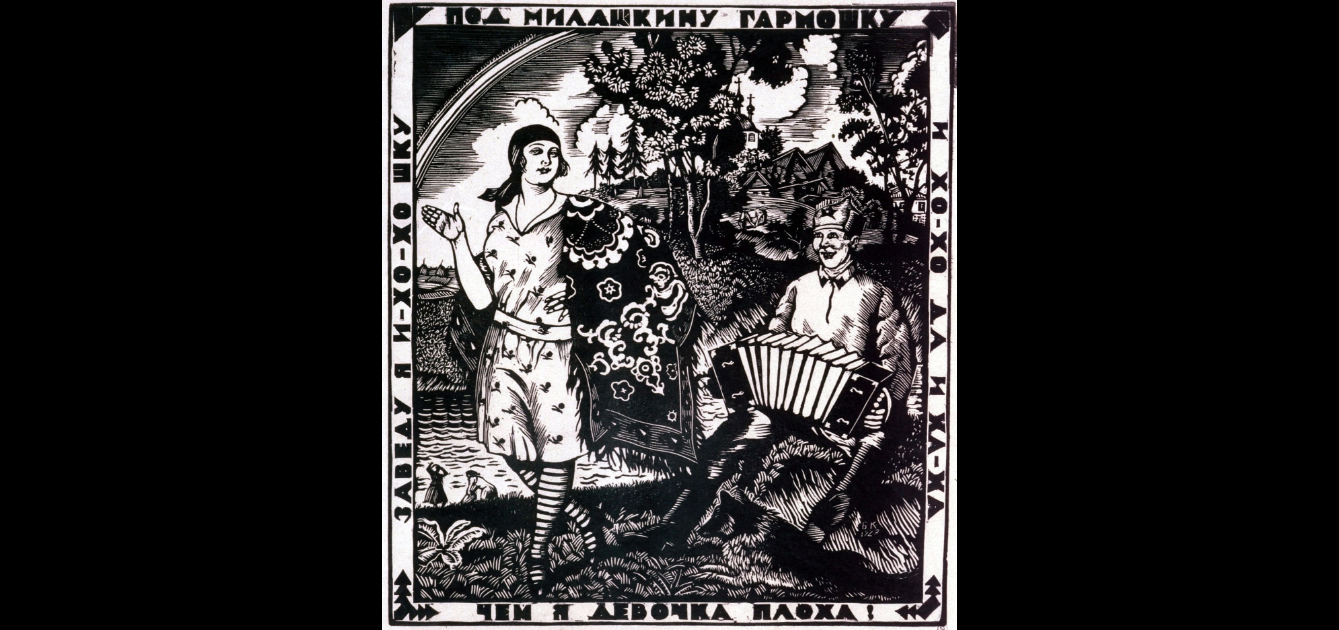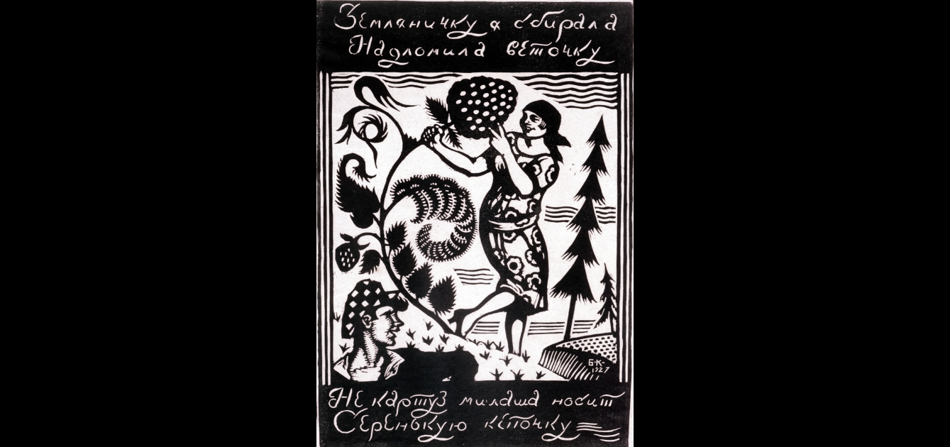 Даже зная, что смерть совсем близко, не изменил Кустодиев своим излюбленным праздничным темам, не сделал палитру темнее и глуше; именно тогда он задумал большую серию произведений, близких к народному лубку. Сюжеты взял из современных народных частушек, которые тщательно записывал. Он успел сделать только две композиции: «Под милашкину гармошку» и «Земляничку я сбирала». Как не вяжутся названия этих линогравюр со словом «смерть», прервавшую работу художника!