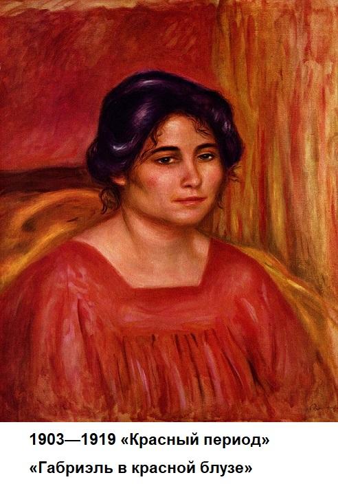 Радость творчества наполняла художника, и это отражается в атмосфере и палитре его картин. Ренуар не любил патетические и трагические сюжеты, он тяготел к изображению простых и светлых радостей обычной жизни. Ему нравилось писать веселых людей, которые пьют или танцуют, цветы, красивые пейзажи, детей, и, конечно, он любил изображать молодых, полных жизни, красивых женщин.