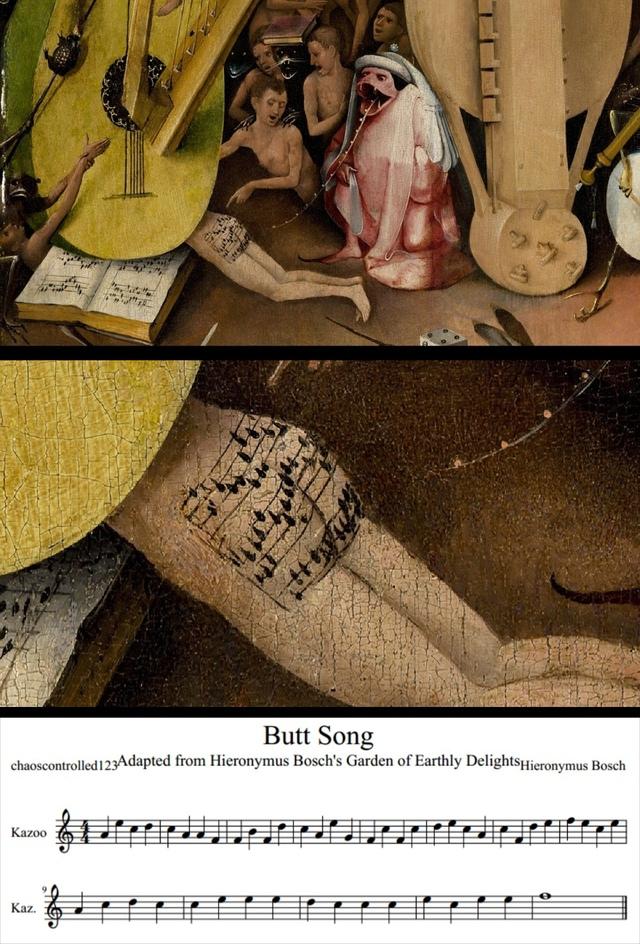 А вот музыкалный фрагмент, записанный нотами на ягодицах одного из персонажей известной картины Иеронима Босха удалоь сыграть. И, кстати, я этот фрагмент из любопытства прослушала))