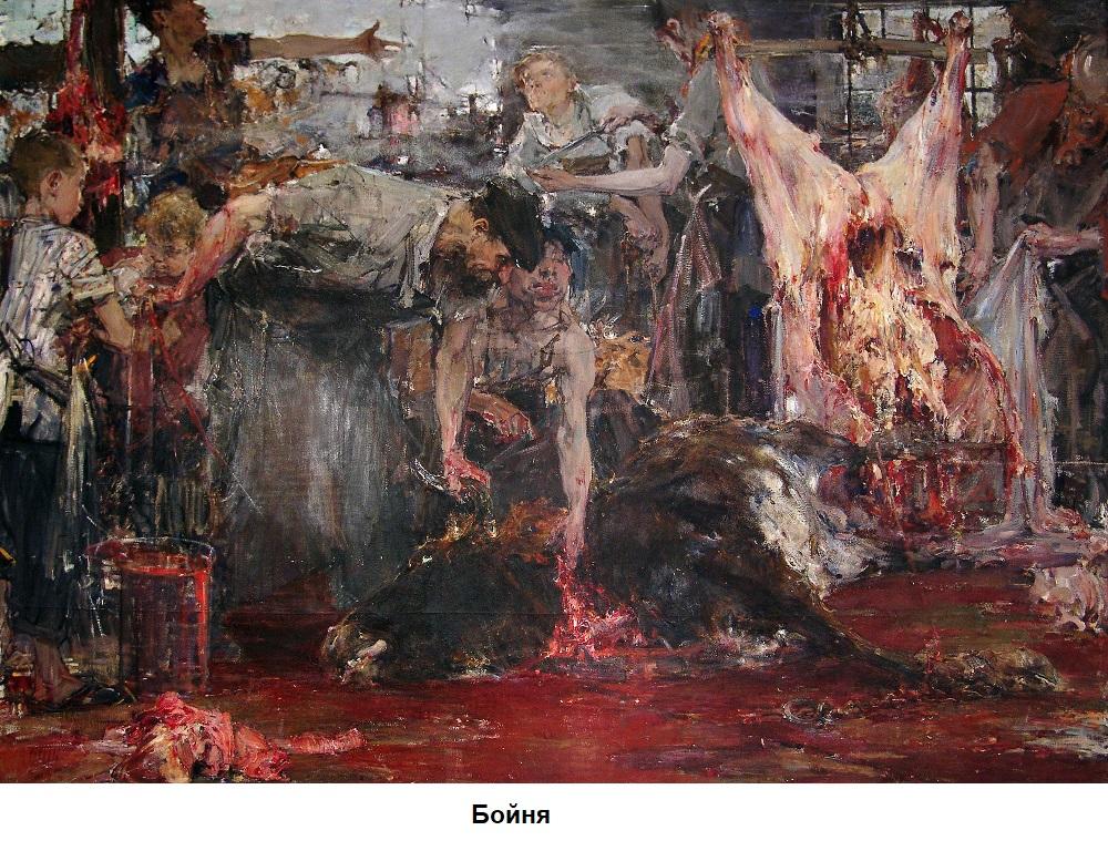 Свое восприятие тогдашней окружающей действительности Феншин отразил в картине "Бойня (1918)" (см. фото)