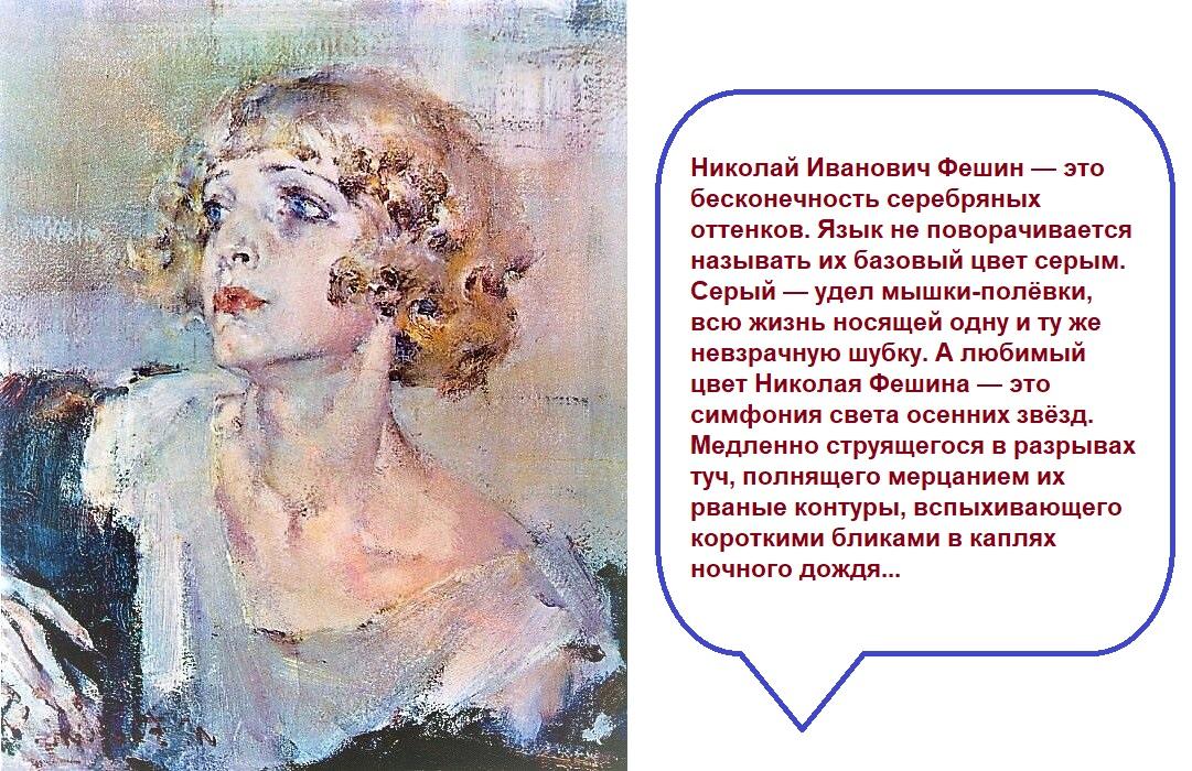 Там творческая жизнь художника сложилась счастливо. Его искусство нашло признание, картины покупались за большие деньги. Газеты писали: “Если вы хотите видеть чудо, идите на выставку Фешина”. Но он оставался русским человеком и художником, тосковал по России, говорил: «Бессмысленна жизнь человека на чужбине»
