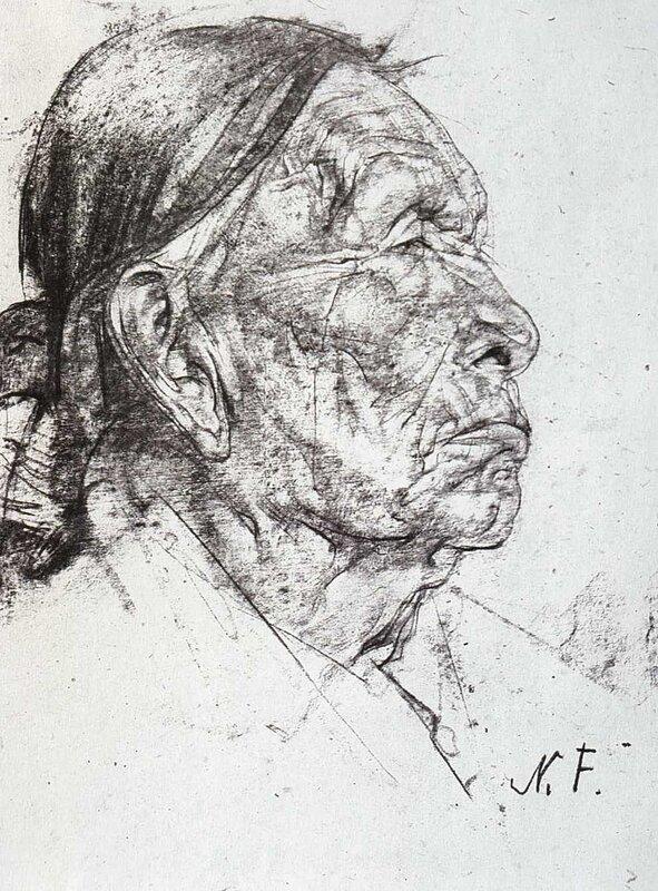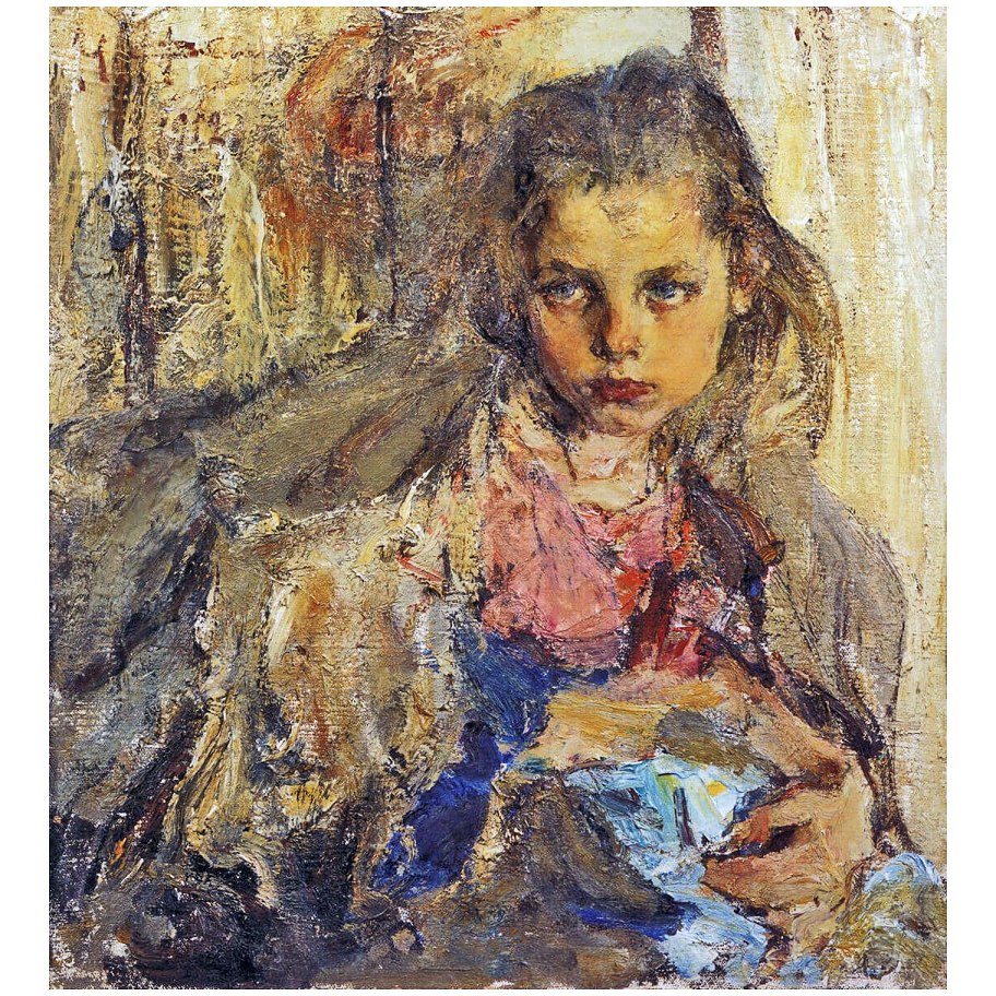 В России зверствуют голод и болезни, родители художника умирают от тифа, Николай Иванович тяжело переживает утрату. В эти годы он пишет 2 совершенно разных автопортрета. На первом (1920) - широко открытыми глазами молодой Фешин вглядывается в окружающий мир, а на втором рисунке (1921) - суровое лицо с колючим взглядом. Две кардинально противоположные работы созданы с разницей в один год...