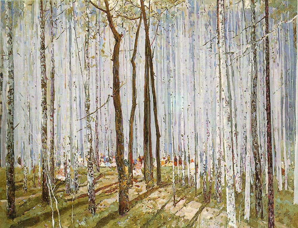 Больше всего нравятся его пейзажи (особенно березовые) и картины с храмами.