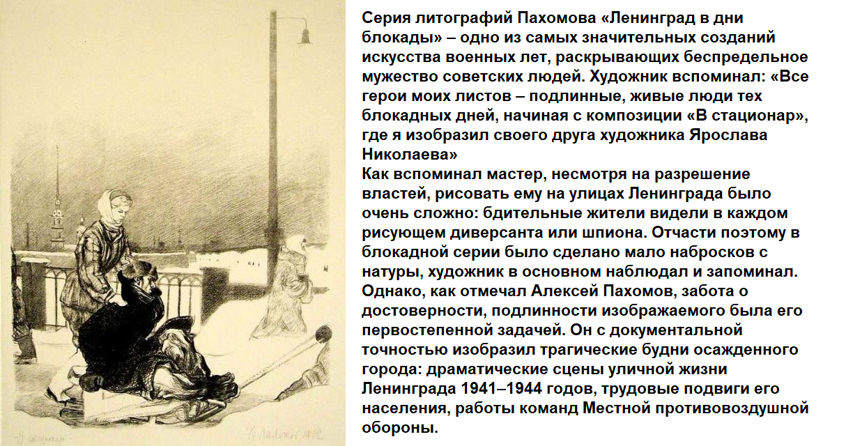 А вот новыми для меня были литографии художника, посвященные блокадному Ленинграду (Всю блокаду Пахомов пережил в Ленинграде, ставшем его второй родиной). Необыкновенно пронзительные рисунки!