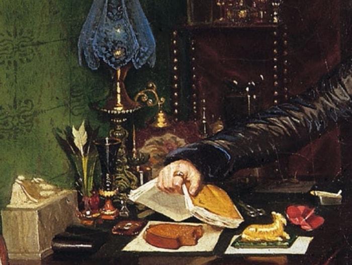 Вспомнился "Завтрак аристократа" П. Федотова. Там тоже только ломоть хлеба...(ниже- фрагмент картины)