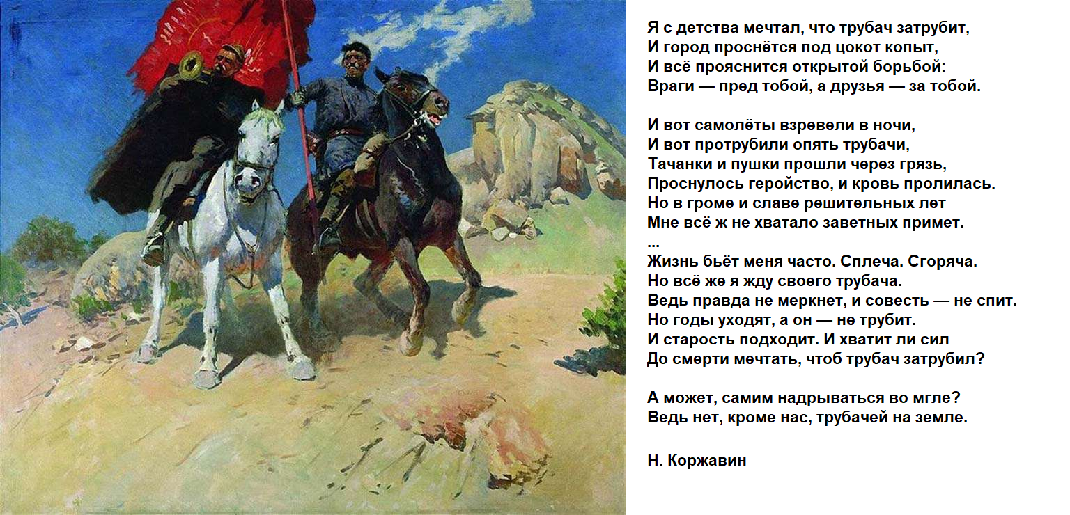 вначале не хотела рисовать этот портрет, но потом вспомнила про тачанку-ростовчанку в исполнении Чижа, люблю эту песню и всегда подпеваю Сергею Чигракову. В Третьяковке, по-моему, "Тачанка" и "Трубачи Первой конной". Чем его картины привлекают лично меня? Они не статичны, в них чувствуется жизнь, а как выписаны лошади! Ну красота же!