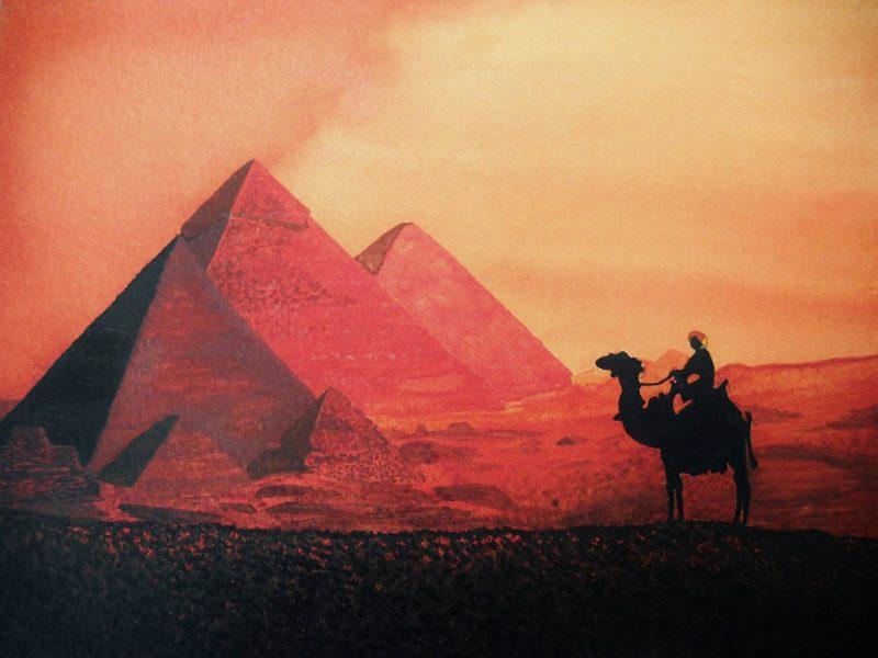 На такусеньком поле - целая сюжетная картина: и месяц, и два верблюда, и даже пирамида! И всё красиво, атмосферно, с настроением... Автору - просто браво!