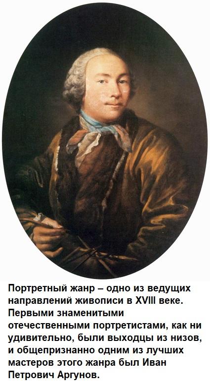 Портреты важных людей - сподвижника Петра I фельдмаршала Бориса Шереметева или контр-адмирала С. Грейга, отличаются у Аргунова величавостью поз и благородством образов. А изображения женщин, стариков, детей полны обаяния.