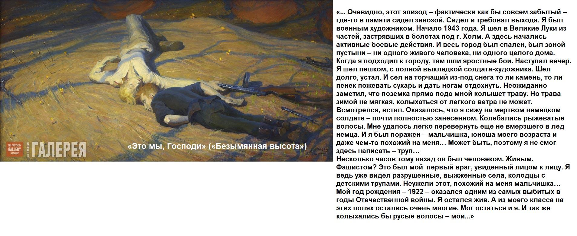 "Борис Неменский сформировался и вырос, как мастер именно на фронте. Будучи девятнадцатилетним юношей, он оказался в самом пекле, как и все наши ребята – будь они интеллигенты или пацаны. Опасность и близость смерти часто подстёгивает жажду творчества – этот феномен породил многие шедевры мирового искусства: от прозы и поэзии до графики и живописи. Юный Неменский не стал исключением"Никогда не могла спокойно рассматривать пронзительные военные работы этого художника - эмоционально очень сильны!