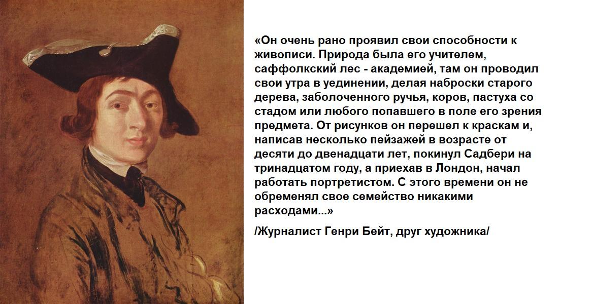 Картины Гейнсборо привлекают своей уникальной техникой исполнения, ярко выделявшей его на фоне коллег-современников. Мманера такого воздушного письма сформировалась у художника еще в ранние годы.Отличная интерпретация автопортрета прекрасного английского художника!