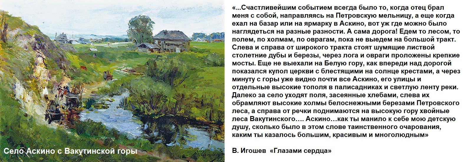 Однажды на хутор приехал священник из села Аскино. Пока он читал молебен, маленький Володя достал уголек из печки и на обложке старого журнала нарисовал его портрет. Это был первый художественный опыт четырехлетнего мальчика. Священник портрет оценил, покачал головой и произнес незнакомое для ребенка слово « талант». С тех пор Володя не расставался с карандашом и бумагой. Яркие детские впечатления о малой родине художник опишет впоследствии в своей книге «Глазами сердца»
