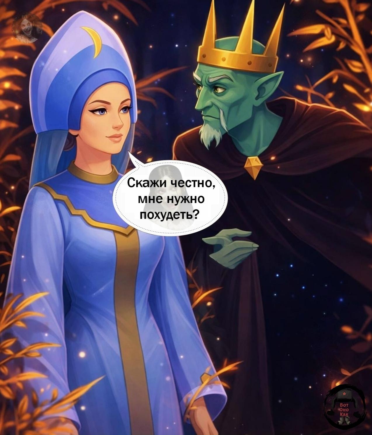 ответить- Ну вот, ты и в гостях у меня, Василиса Прекрасная!Отличный кадр из чудесного мультика.