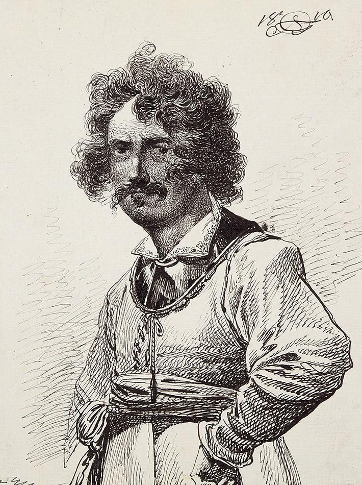 Не знаю почему, но мне приглянулся вот такой портрет Орловского (см. ниже). По-моему он похож на 4-й из Ваших портретов, но немного старше. А сейчас, глядя на представленные Вами портреты, я бы нарисовал первый из них. Такая своеобразная, просто уникальная у него причёска.